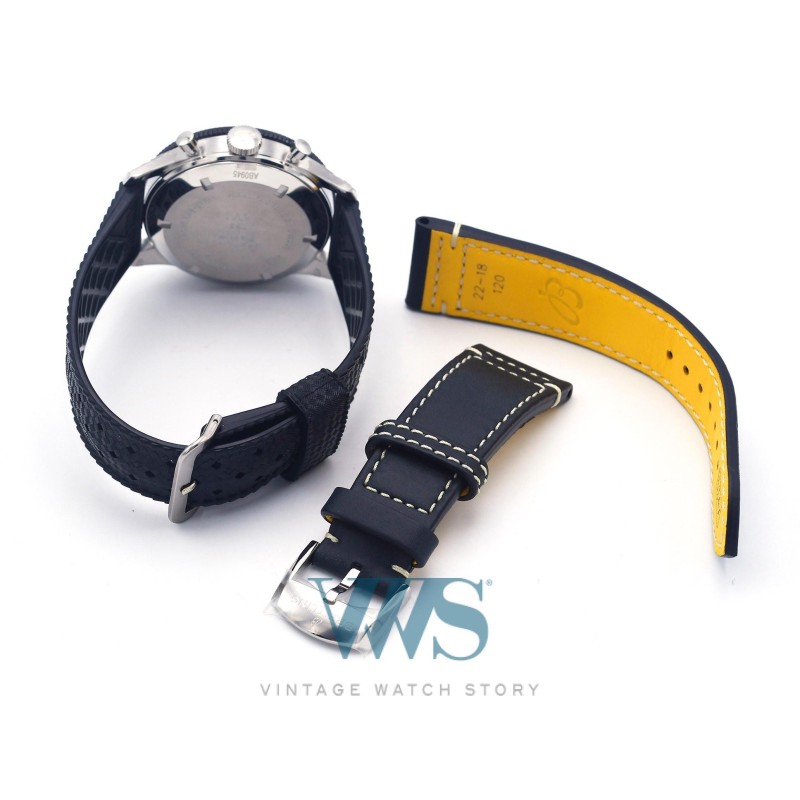 BREITLING pilot strap in black overstitched leather with original pin buckle, Tropic rubber strap from the 1970s and havana leather strap from order.