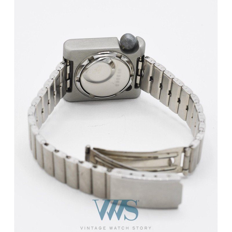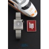 Design woman's watch with a rectangular shape in grey ball winding version.